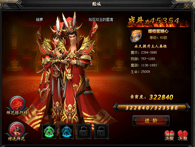5、玩家离婚后,婚戒等级不变,只是不能进行培养,再婚后即可继续对婚戒进行培养;