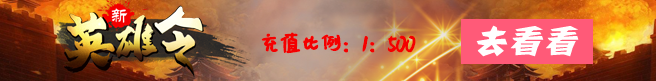 【英雄令BT】 测试区开启,测试期间充值正式开区奖励20%充值