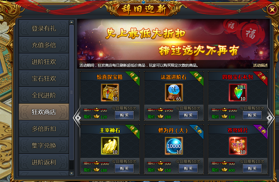 (三)狂欢商店(开服时间大于等于第四天开启)